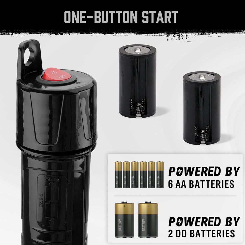 - Battery requirements: 6 AA batteries or 2 D batteries (not included)