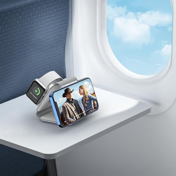 - Fold it into a stand, watch TV and video chat while charging, and charge up to Phone & iWatch at the same time