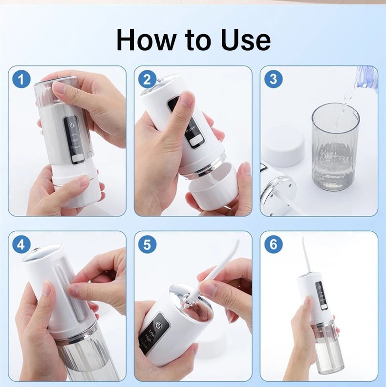 1. This pulsed tooth flusher uses high-pressure water pulse technology to deeply and powerfully clean your teeth without hurting your gums, whichcan freshen your breath, remove tartar and tartar, and prevent tooth decay and gum disease.