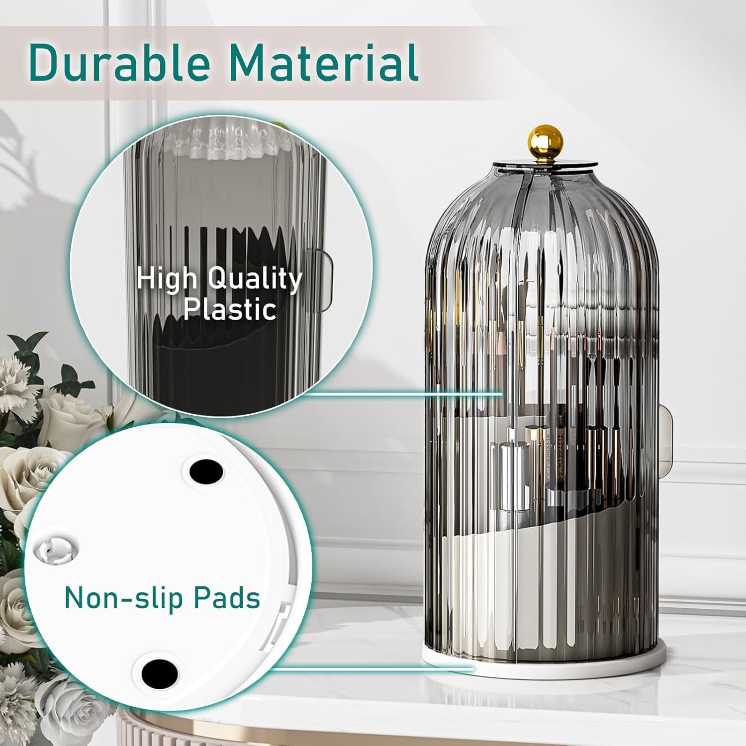 360° Rotatable Base: The rotating design make it is easier and sooner to get any of your makeup tools by simply spinning the base.