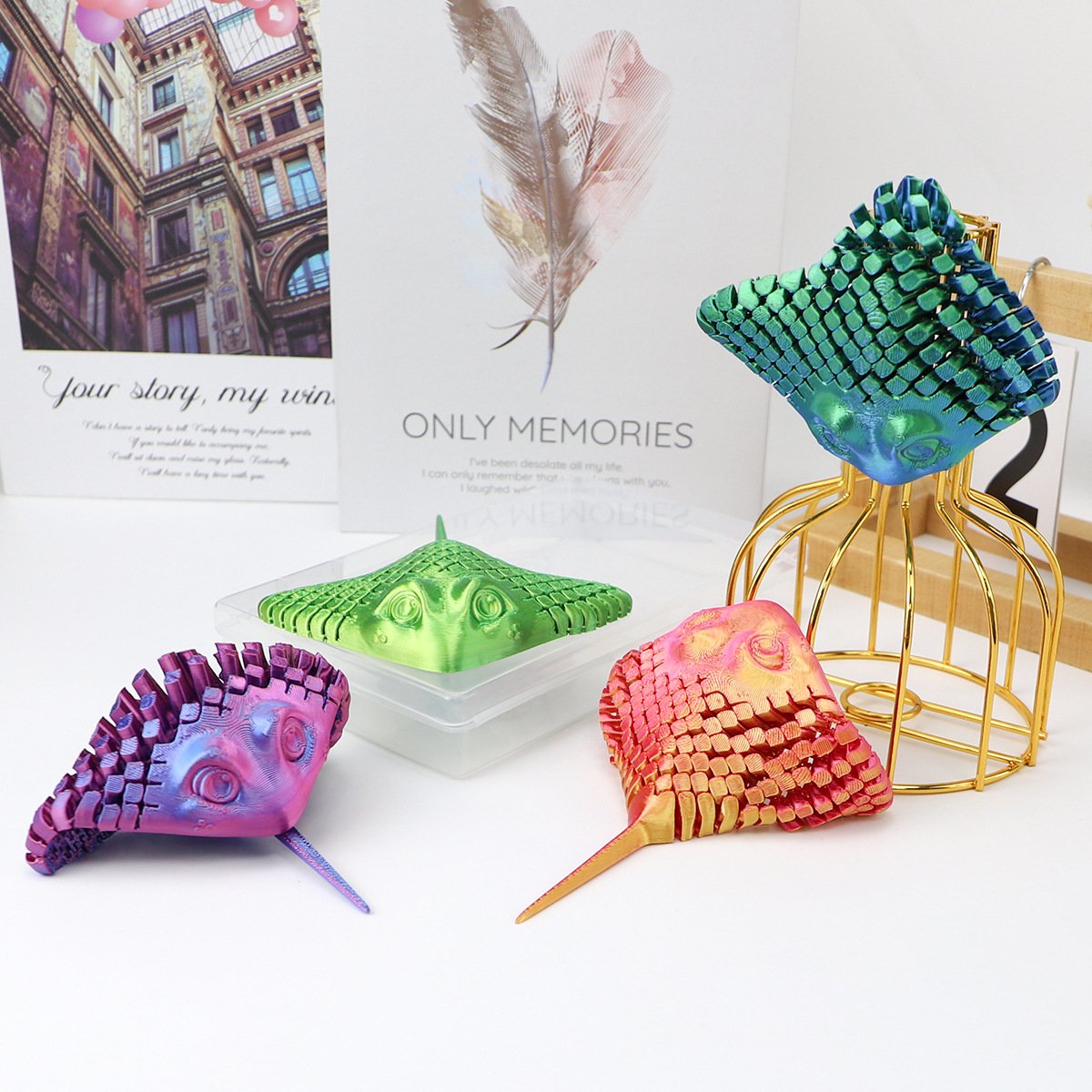 Unleash your inner marine explorer with our captivating 3D Printed Articulated Manta Ray fidget toy (or a stingray, whichever you prefer!). Crafted from durable PLA plastic in a vibrant multicolor design, our fun 3d printed animal offers a mesmerizing tactile experience. Marvel at its articulated segments as they glide smoothly through your hands, providing a soothing and satisfying journey.