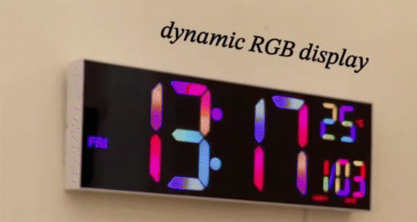 -【8 Color Switchable & Adjustable Brightness】Our wall clock digital numbers can be switched to 9 RGB colors, and it has 5-level adjustable brightness display( included full dark), you can customize the color to suit your personal preference, ensuring it won't be too distracting in dim environments or too dim in well-lit spaces.