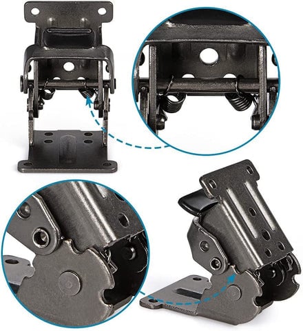 Self-lock function: In order to increase safety, these brackets have a spring-activated self-lock function that can be fixed by locking in the open position. When you are not using a desk or workbench, just click the latch and fold it down to get more space.