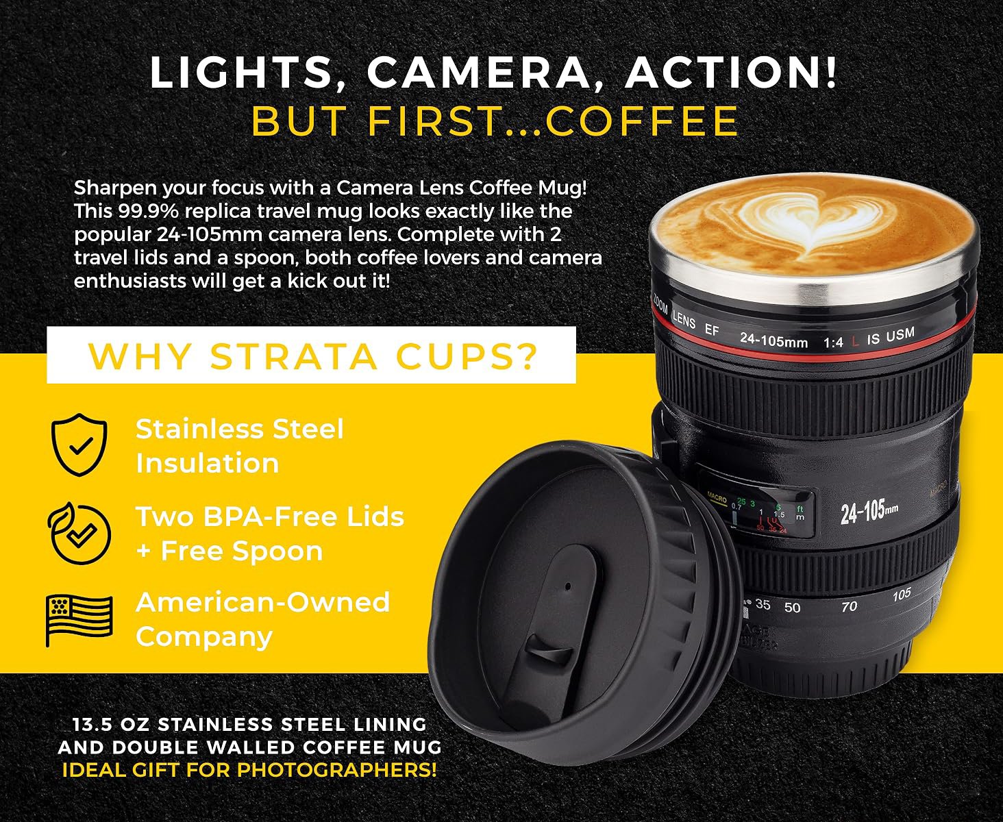 ✅ THE STRATA CUPS PROMISE: We're so confident you'll love this camera lens mug, we're practically obsessed with it ourselves. If for any reason you're not 100% satisfied (and we’re talking extremely picky here), just reach out. We’ll make it right. Promise. 😎