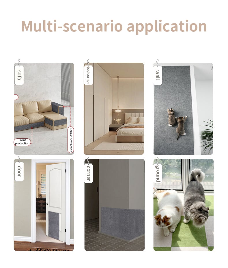 Cat furniture protector: Cat are naturally drawn to rough-textured surfaces for scratching, the cat scratch mat surfaces meet cats instinctual scratching needs, which is scratch-resistant and does not shed easily, can draw your cat's attention away from your valuable furniture, not only keeping your cat happy but also protecting your furniture from cat scratching.
