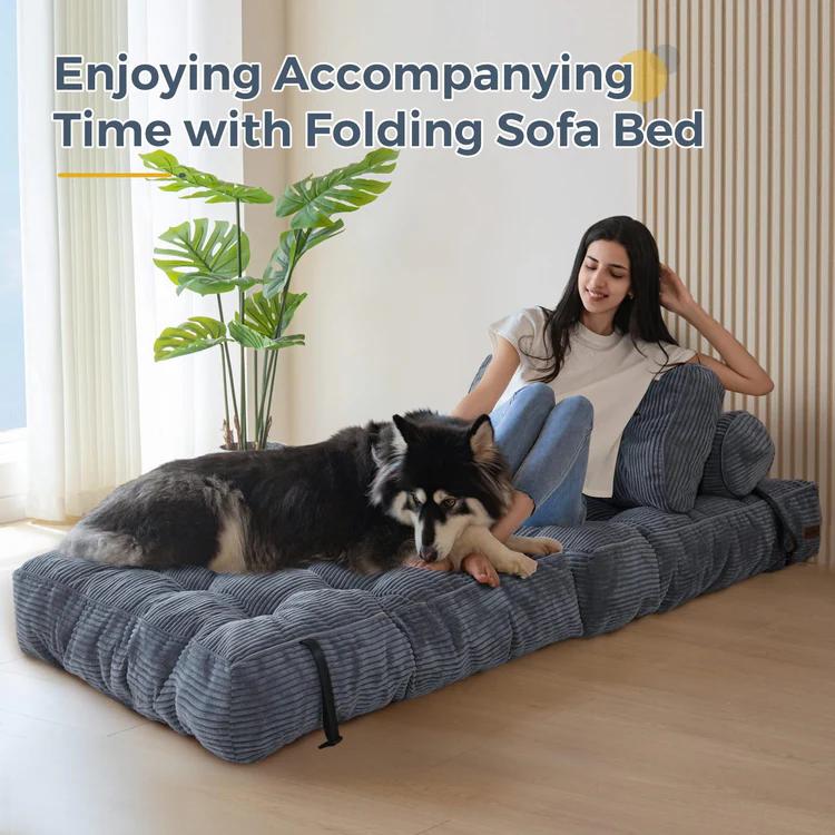 Corduroy Folding Sofa Bed, Convertible Sleeper Chair with Pillow Foldable Mattress with Back Support; Single Size